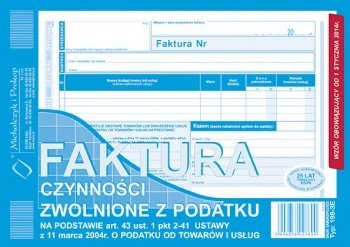 Strona główna » Sklep » 198-3E Faktura czynności zwolnione z podatku A5 (o+1k) MICHALCZYK&PROKOP