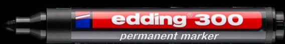 Najpopularniejsze markery niezmywalne Edding _- z końcówką okrągłą (300) oraz ściętą (330). Trwały, szybkoschnący, odporny na działanie światła, wody i ścieranie tusz, bez dodatku toluenu i ksylenu. Szerokość linii pisania: 1,5 - 3 mm (300), 1-5mm (330). Nadają się do ponownego napełniania. Idealne do pisania oraz wykonywania oznaczeń na niemal wszystkich rodzajach powierzchni, również na metalu, szkle oraz tworzywach sztucznych. _- Dostępne także w komplecie - 4 kolory._- jednostka sprzedazy 1 sztuka