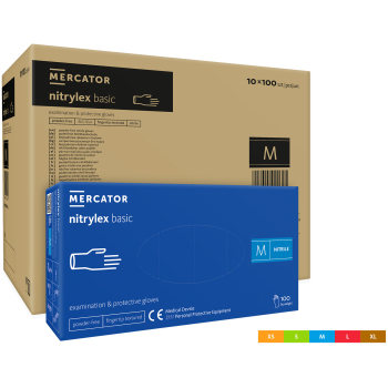 Rękawice nitrylowe bezpudrowe diagnostyczne MERCATOR, nitrylex basic, (100 szt.), rozmiar M, niebieskie