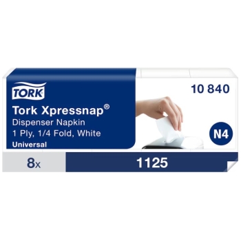 Serwetki dyspenserowe Tork, 1 warstwa, celuloza, 6×33 cm, kolor biały, 9000 szt, system N4 8op x 1125, 10840
