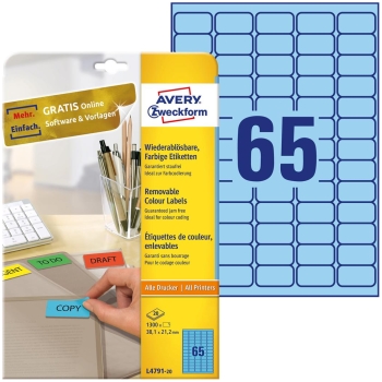 Etykiety niebieskie L4791-20 38,1 x 21,2 20ark Usuwalne, Avery Zweckform