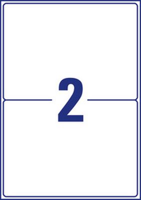 Technologia druku:•LASER: Tak•LASER COLOR: TakCechy produktu:•Rozmiar etykiety (mm): 210 x 148•Etykiet / arkusz: 2•Arkuszy/ opakowanie: 40•Etykiet/ opakowanie: 80•Kolor: białe•Format: A4•Rzędów/ arkusz: 1×2