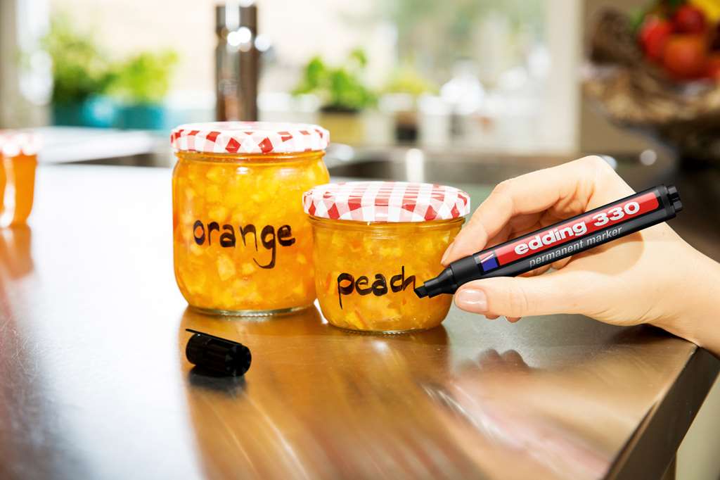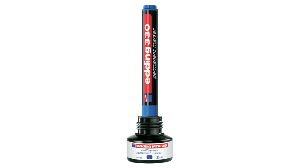 Najpopularniejsze markery niezmywalne Edding _- z końcówką okrągłą (300) oraz ściętą (330). Trwały, szybkoschnący, odporny na działanie światła, wody i ścieranie tusz, bez dodatku toluenu i ksylenu. Szerokość linii pisania: 1,5 – 3 mm (300), 1-5mm (330). Nadają się do ponownego napełniania. Idealne do pisania oraz wykonywania oznaczeń na niemal wszystkich rodzajach powierzchni, również na metalu, szkle oraz tworzywach sztucznych. _- Dostępne także w komplecie – 4 kolory._- jednostka sprzedazy 1 sztuka