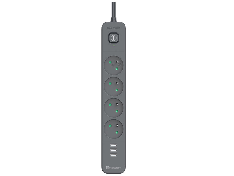 Listwa zasilająca antyprzepięciowa TRACER Power Line+ mobile ready 1.5 m to niezastąpione rozwiązanie dla każdego domu i biura. Wyposażona w cztery gniazda i trzy porty USB A (5V, 2,4A), pozwala na jednoczesne podłączenie wielu urządzeń, w tym mobilnych, bez potrzeby używania dodatkowych adapterów. Długość kabla wynosząca 1,5 metra zapewnia elastyczność i wygodę użytkowania.