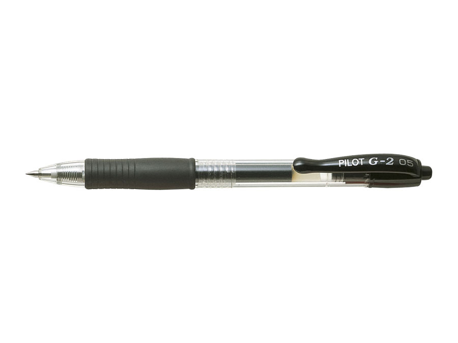 Długopis z wymiennym wkładem żelowym i gumowym, wygodnym uchwytem. Grubości linii pisania: 0,25 mm, długość linii pisania 1300 m. Wyposażony w mechanizm chowania wkładu oraz specjalne zabezpieczenie przed poplamieniem ubrania. Pisze miękko, pozostawiając gładkie i równe linie. Doskonale nadaje się do opisywania faktur. G2 jest zaprojektowany według najwyższych wymogów, aby zapewnić najlepszą jakość pisania w XXI wieku. Pasuje wkład G-2.