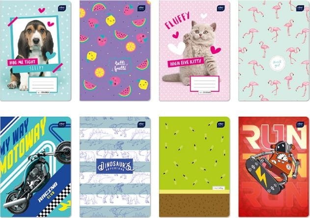 Zeszyty w intensywnych kolorystycznie grafikach, zaprojektowane zgodnie z aktualnymi trendami w designie i modzie tak, aby sprostać wysokim oczekiwaniom każdego ucznia.